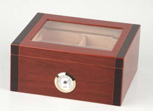 průhledné víko z broušeného skla, dvojité dnoRozměry:V 11 x Š 26 x H 22 cm, Příslušenství: vlhkoměr + zvlhčovač
